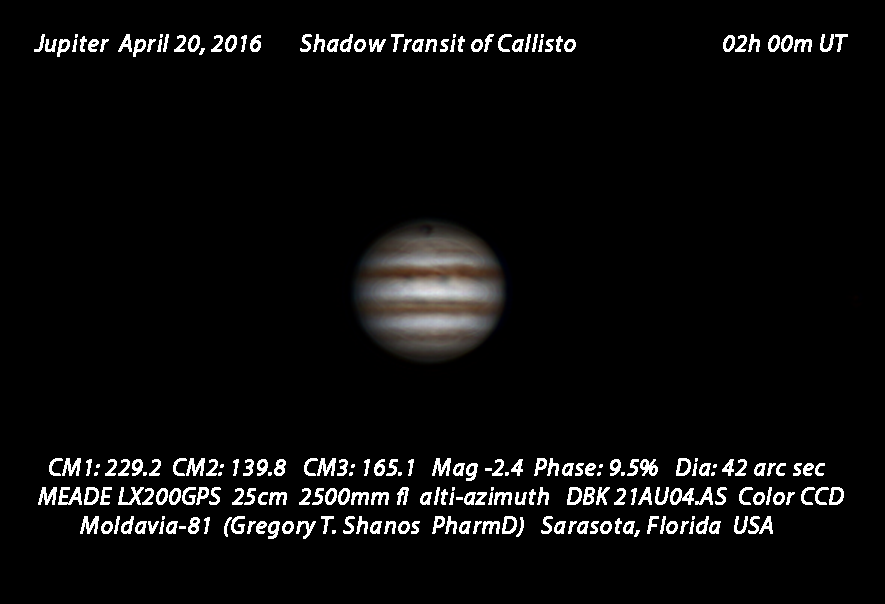 Meade LX200 GPS 25cm 2500mm focal length alti-azimuth mounted . Imaging Source DBK 21AU04.AS Color CCD camera.