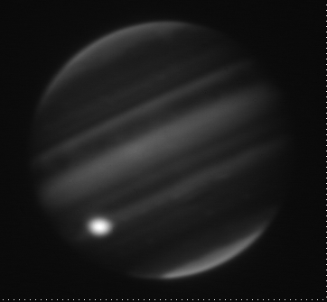 2.16-micron observation of Jupiter taken by the staff of NASA's Infrared Telescope Facility (IRTF) using the guide camera of the SpeX facility infrared spectrometer as a part of a program to characterize atmospheric variability in Jupiter to support the Juno mission.