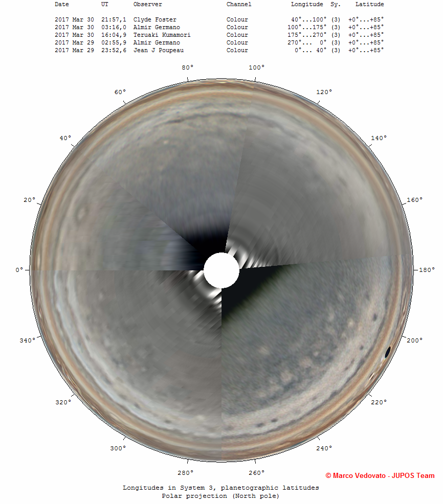 Jupiter North polar map, 2017 March, 29-30