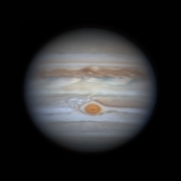GRS near CM. 2 rgb images de-rotated, 8 min. Resolution limited by seeing, altitude.