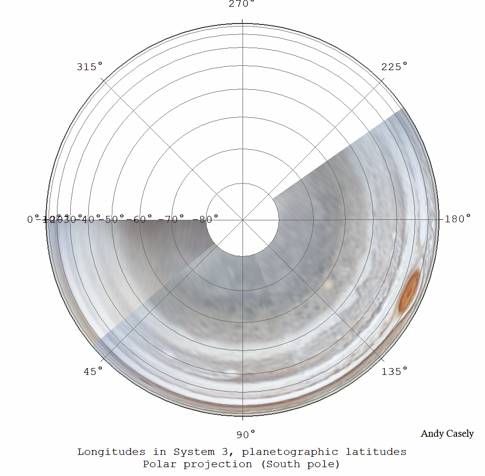 South Polar projection map in RGB, created from 3 images - 1037UT, 1140UT, 1223UT
