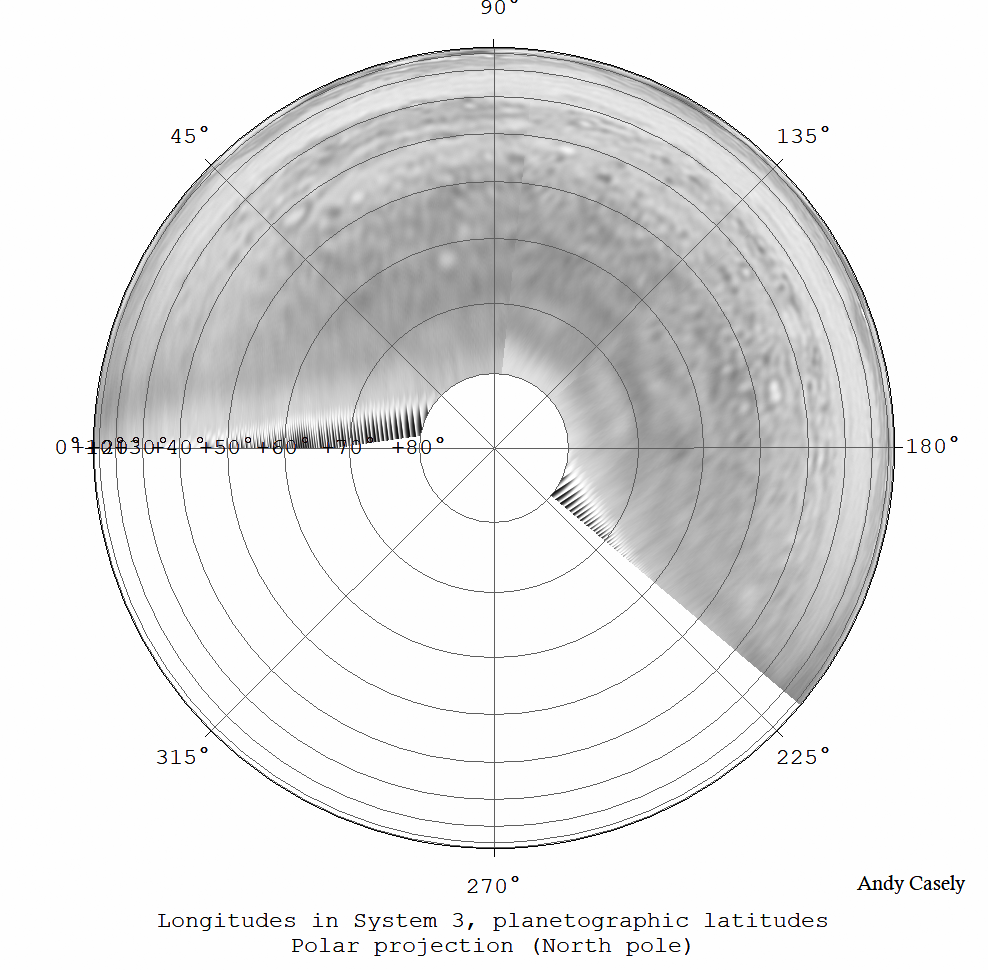 North Polar projection map in IR642, created from 3 images - 1049UT, 1155UT, 1234UT