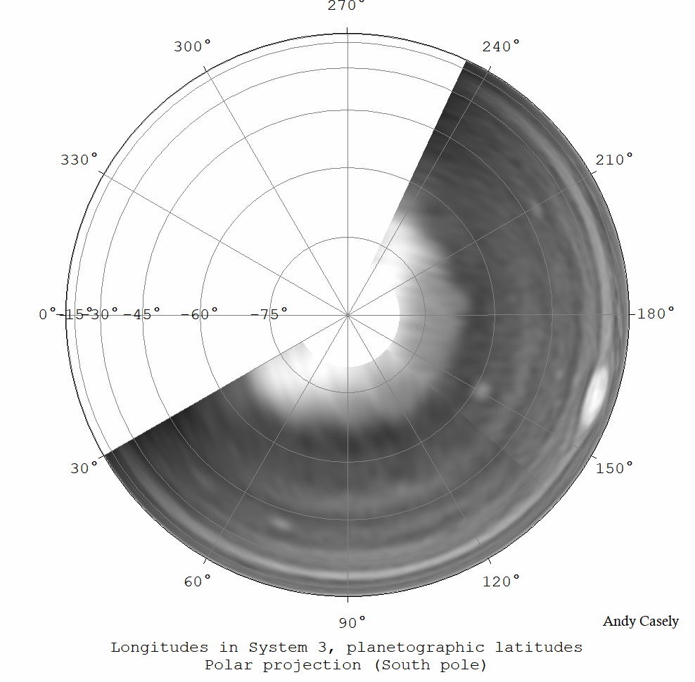 South polar map in methane from two images, 11:59 & 13:45UT, fair seeing.