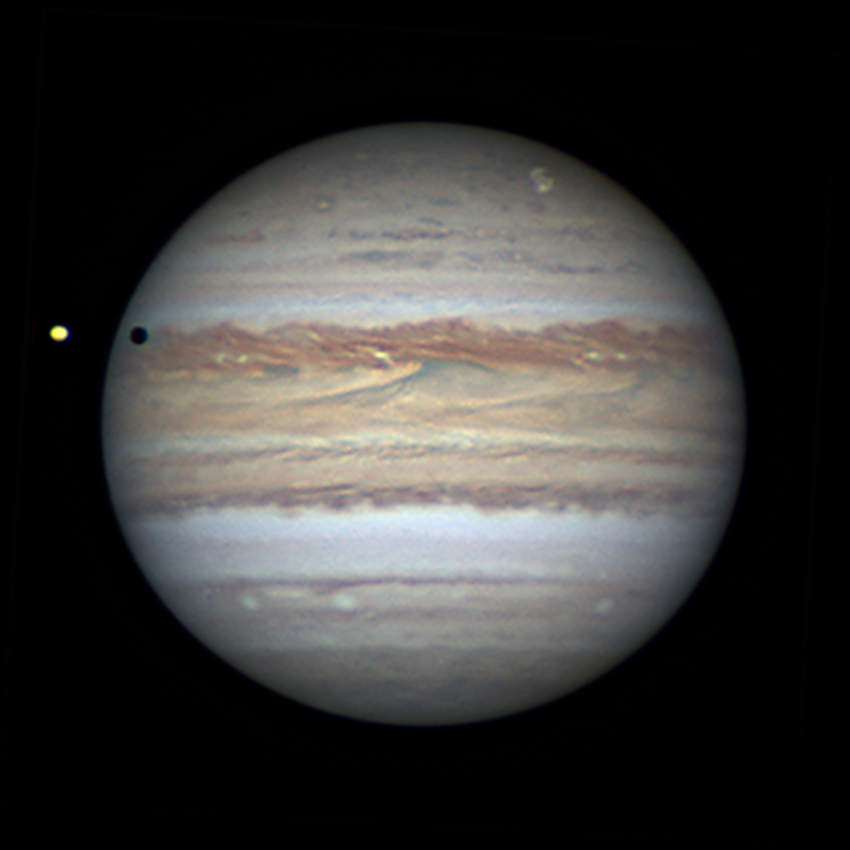 RGB one rotation before flyby. Io and shadow, Ganymede in transit