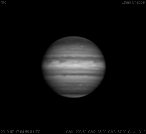 Yet again a night of good seeing, but too windy for the CGEM DX/C14. Notes: The Equatorial Zone has a lot of festoon activity. The SEBn is light. The SEBs is dark and clumpy.