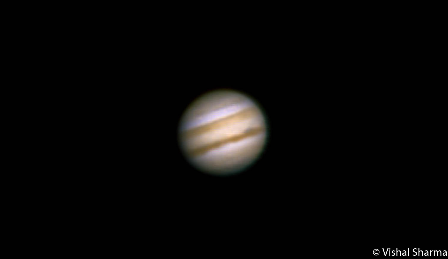 Jupiter with Cloud Bands. Clicked on 2020-04-20 at 03:30 AM IST (10PM UTC), from Ajnara Le Garden, Backyard, UP, India
