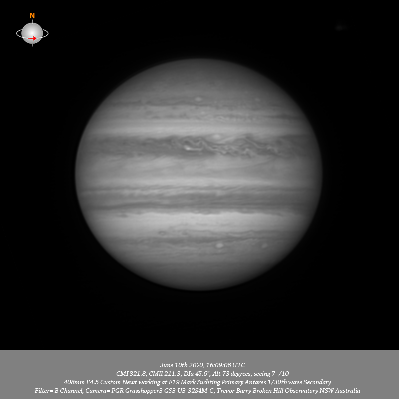 B channel data, very good seeing, stacked 80% of all B channel frames, exceptional depth of detail from pole to pole & limb to limb.