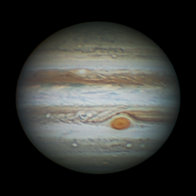 Jupiter image from March 4 with C14 and PGR Chameleon, Astronomik Typ IIC RGB filters. North up and preceding side to the right