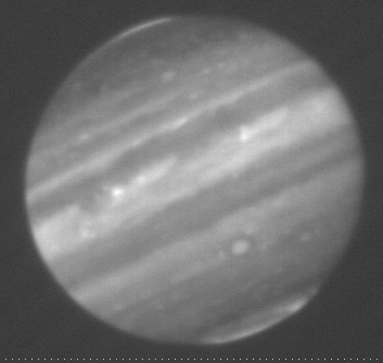 3.80-micron (L' filter) observation of Jupiter taken by the staff of NASA's Infrared Telescope Facility (IRTF) using the guide camera of the SpeX facility infrared spectrometer as a part of a program to characterize atmospheric variability in Jupiter to support the Juno mission. This filter is sensitive to sunlight reflected from clouds as deep as 1 bar, plus some additional radiation from H3+ aurora toward the poles.
