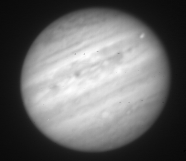 1.58-micron observation of Jupiter taken by the staff of NASA's Infrared Telescope Facility (IRTF) using the guide camera of the SpeX facility infrared spectrometer as a part of a program to characterize atmospheric variability in Jupiter to support the Juno mission.