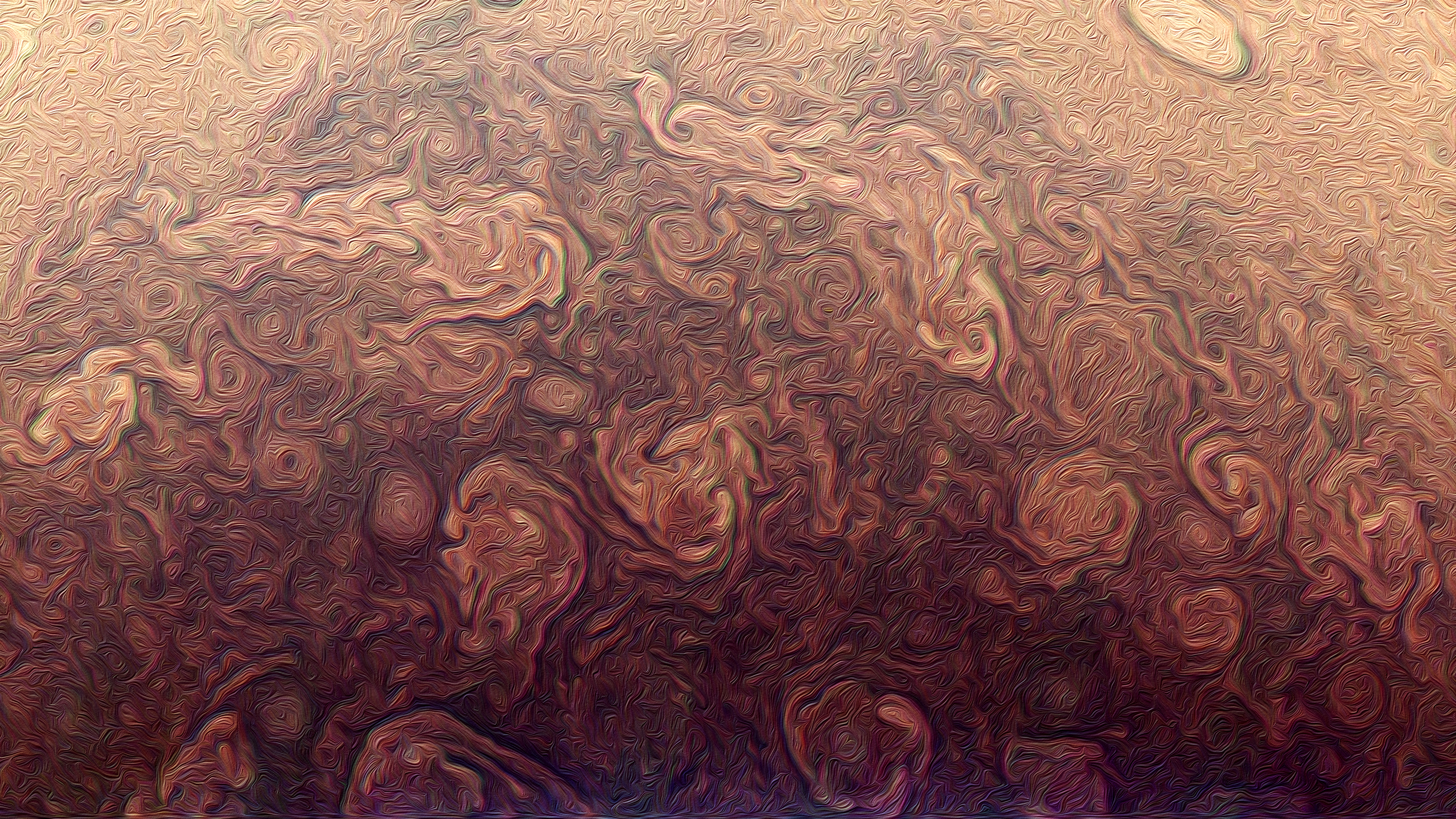 Some of Jupiter's storms stylized as an oil painting to enhance the texture of the storm clouds