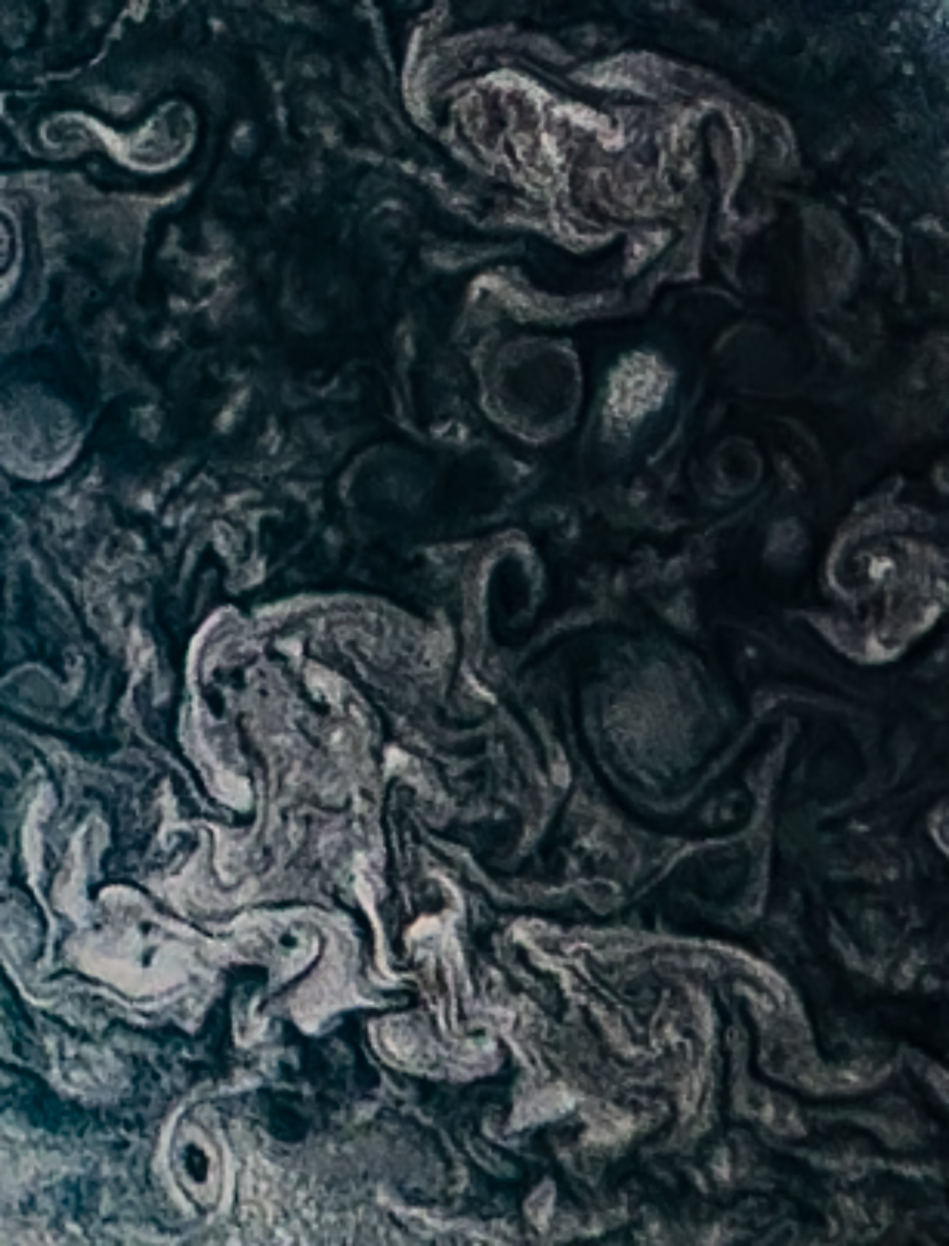 Junocam pixels are 12 bits deep from the camera but are converted to 8 bits inside the instrument using a lossless "companding" table, a process similar to gamma correction, to reduce their size. All Junocam products on the missionjuno website are in this 8-bit form as received on Earth. Scientific users interested in radiometric analysis should use the "RDR" data products archived with the Planetary Data System, which have been converted back to a linear 12-bit scale.