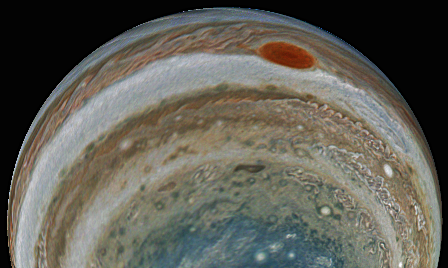 Outbound Perijove-06 images reprojected to 2017-05-19T08:59:00, illumination-adjusted, enhanced, merged, sharpened.