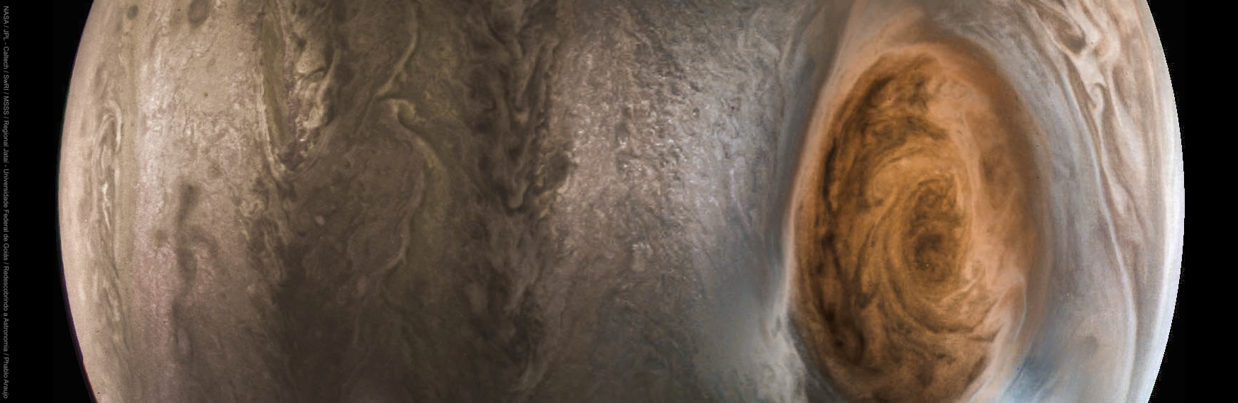 A composition of the images recorded by the Mission Juno show Jupiter's great spiral storm.