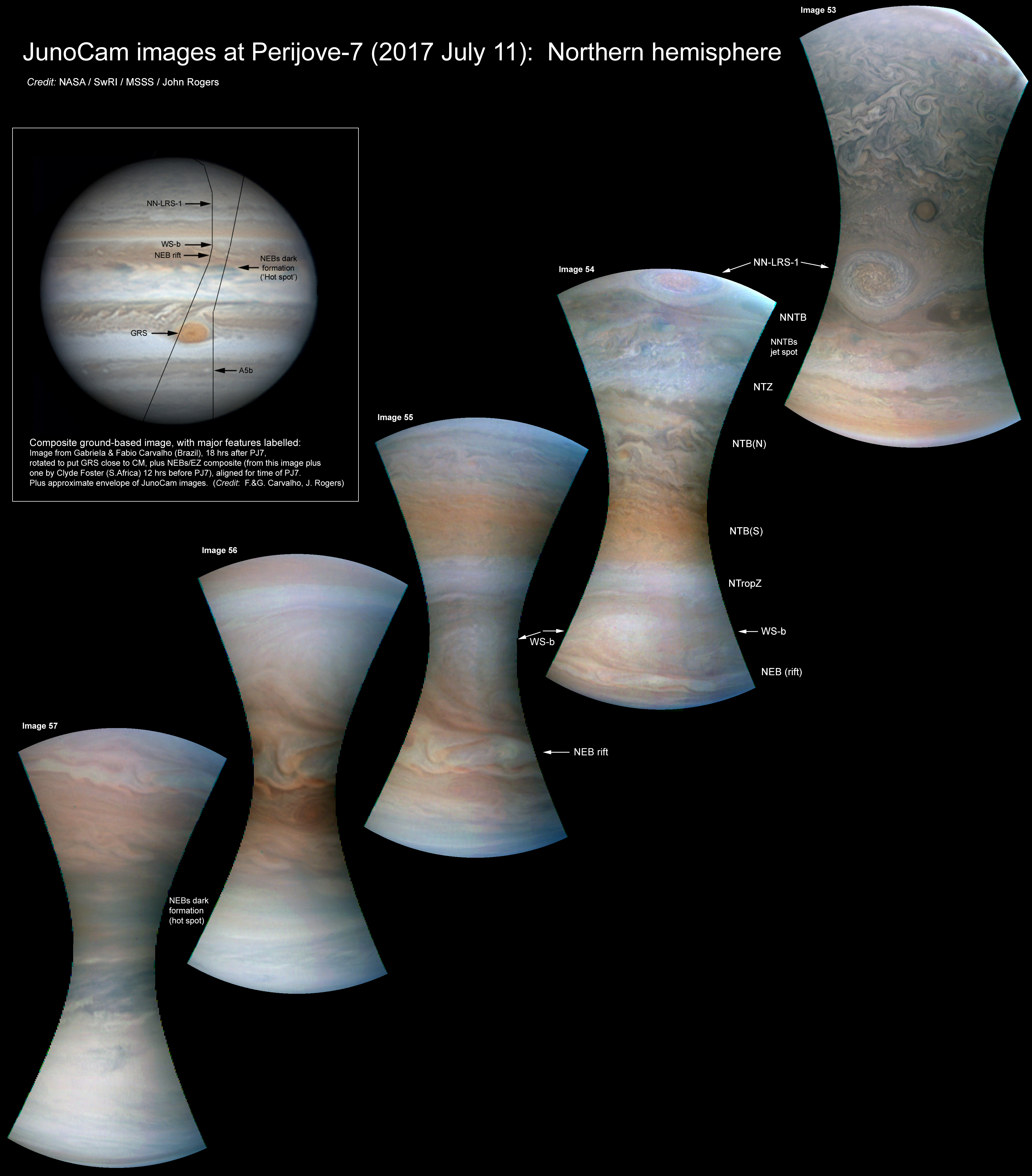 Here is a gallery of the PJ7 northern hemisphere images. The pass was totally successful in imaging all the features of interest!-- not just the GRS, but also anticyclonic ovals NN-LRS-1 and WS-b, and a NEBs hot spot.