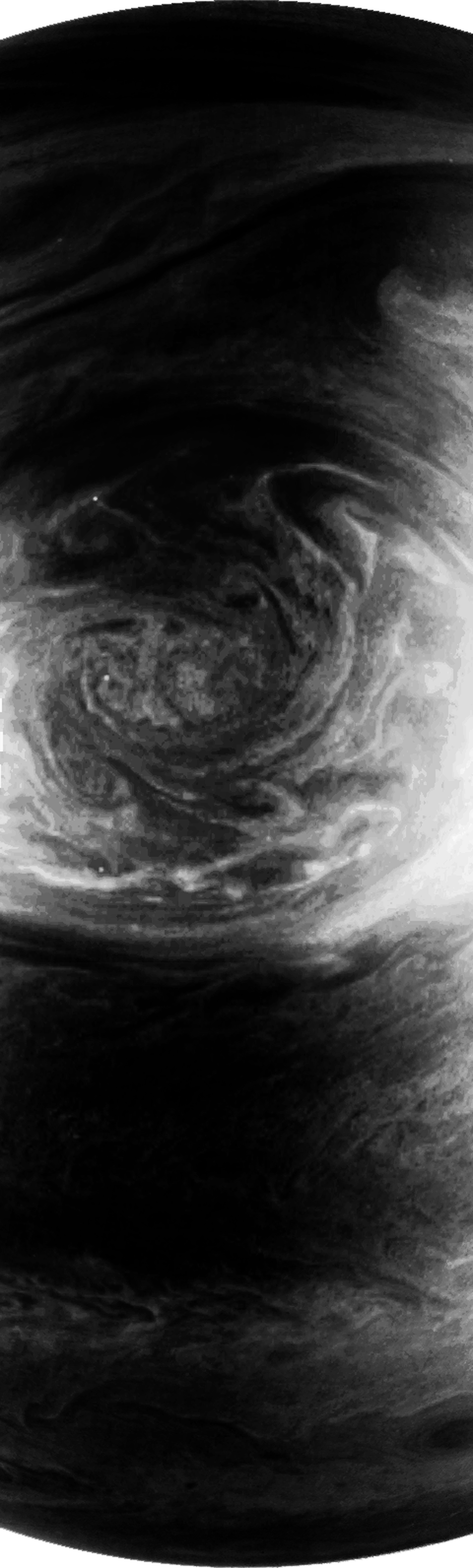 Junocam pixels are 12 bits deep from the camera but are converted to 8 bits inside the instrument using a lossless "companding" table, a process similar to gamma correction, to reduce their size. All Junocam products on the missionjuno website are in this 8-bit form as received on Earth. Scientific users interested in radiometric analysis should use the "RDR" data products archived with the Planetary Data System, which have been converted back to a linear 12-bit scale.