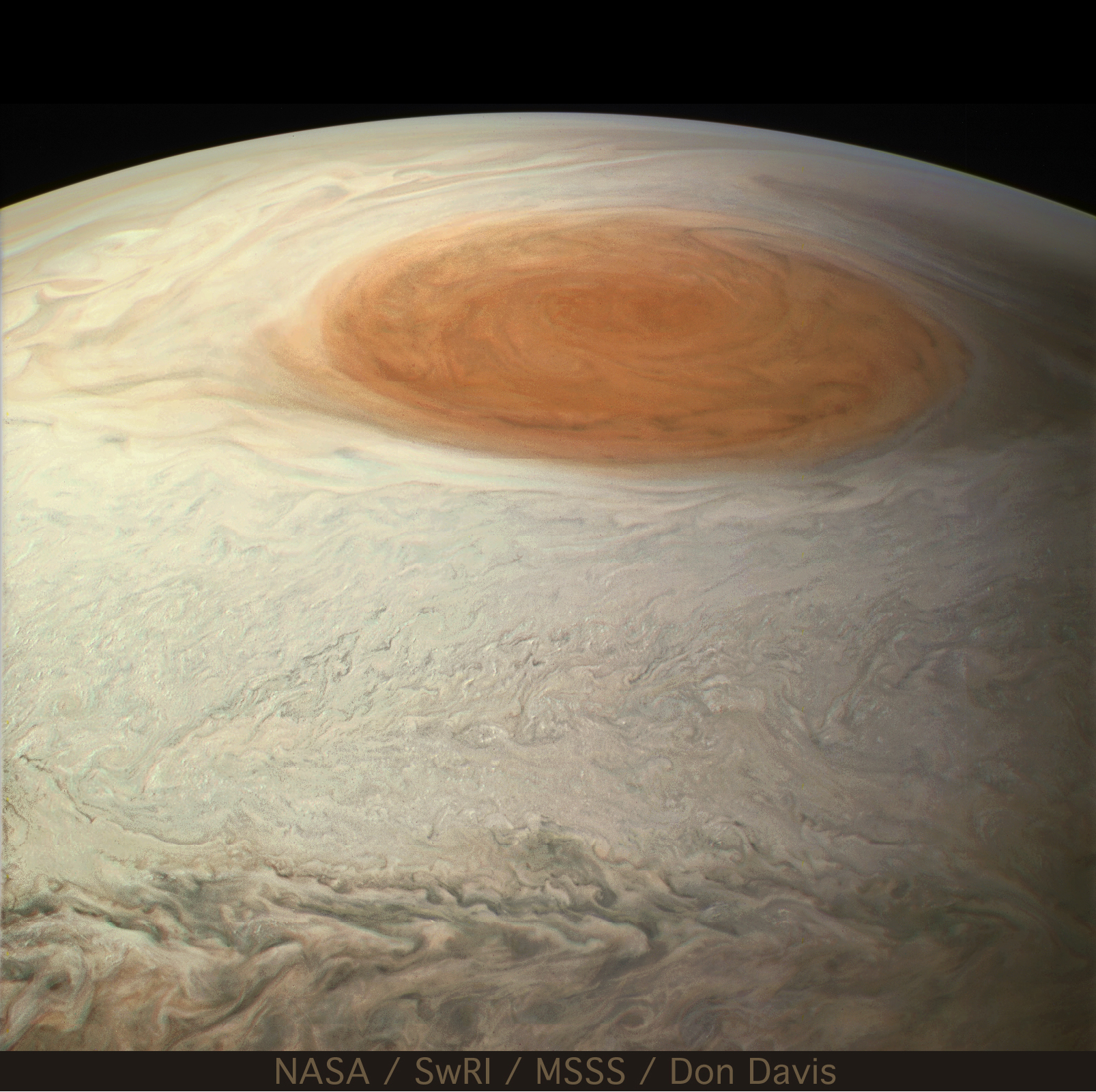 The Great Red Spot, with zones of lighter cloud belts in the foreground.