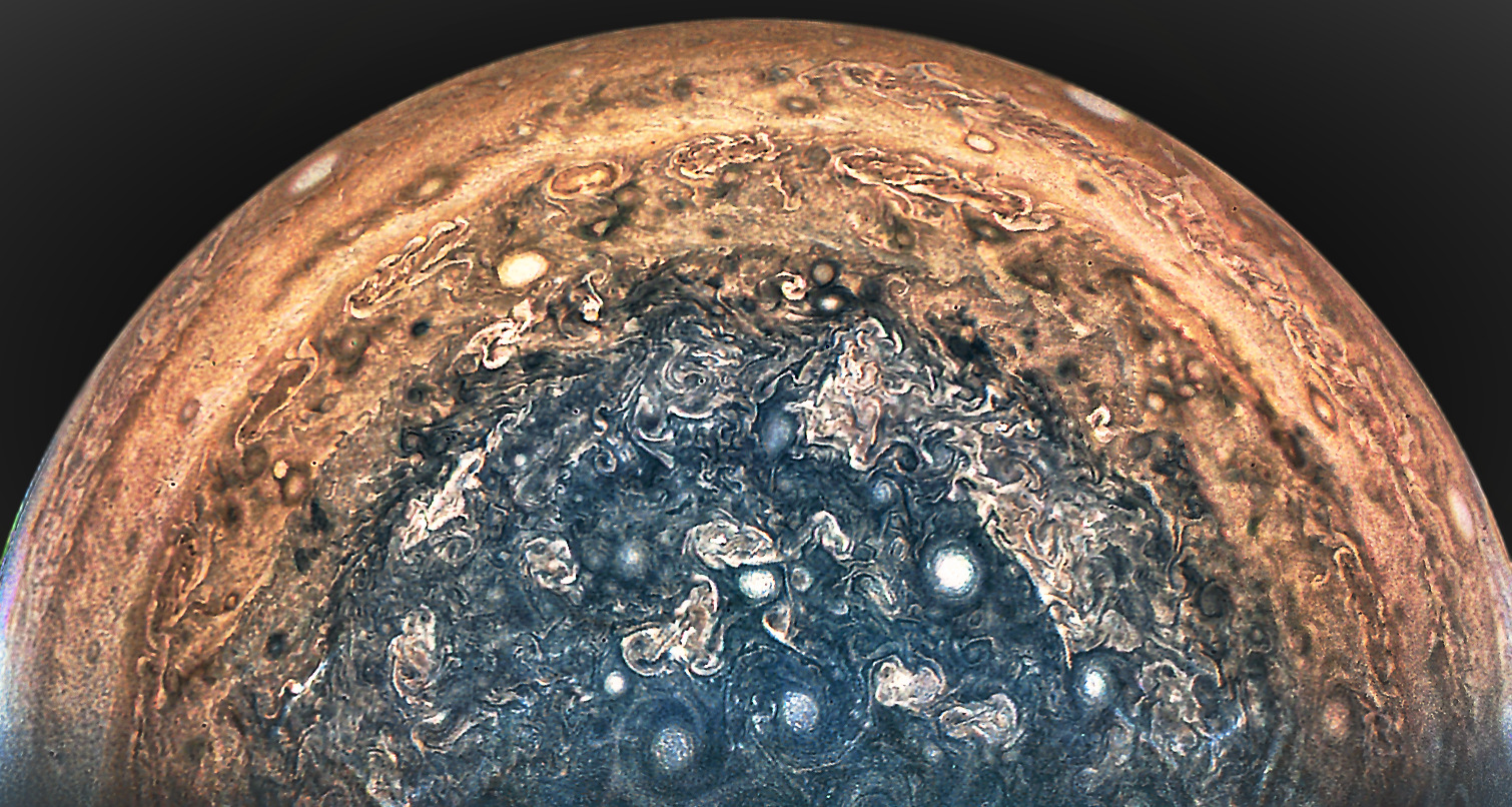 We invite you to download raw JunoCam images posted here and do your own image processing on them. Be creative! Anything from cropping to color enhancing to collaging is fair game. Then upload your creations here.