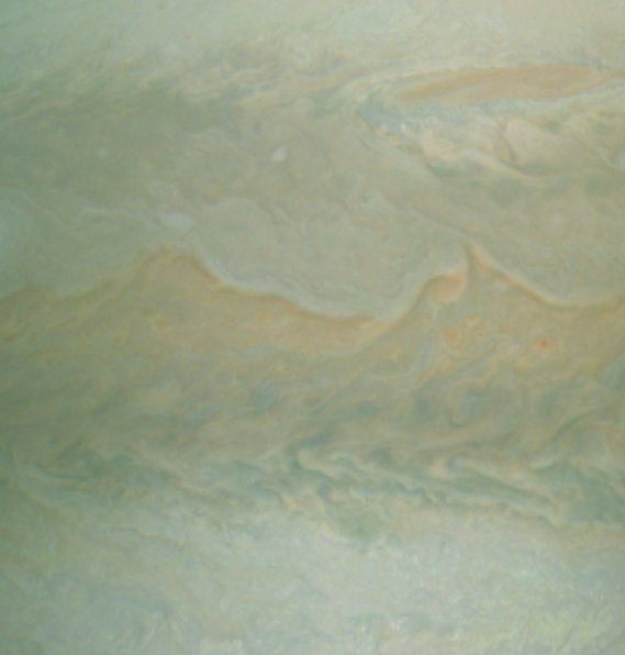Junocam pixels are 12 bits deep from the camera but are converted to 8 bits inside the instrument using a lossless "companding" table, a process similar to gamma correction, to reduce their size. All Junocam products on the missionjuno website are in this 8-bit form as received on Earth. Scientific users interested in radiometric analysis should use the "RDR" data products archived with the Planetary Data System, which have been converted back to a linear 12-bit scale.