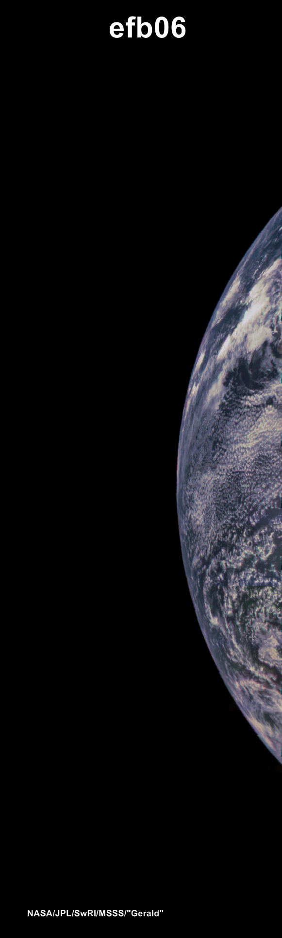 A special note about the Earth Flyby mission phase images: these were acquired in 2013 when Juno flew past Earth. Examples of processed images are shown; most contributions are from amateurs.
