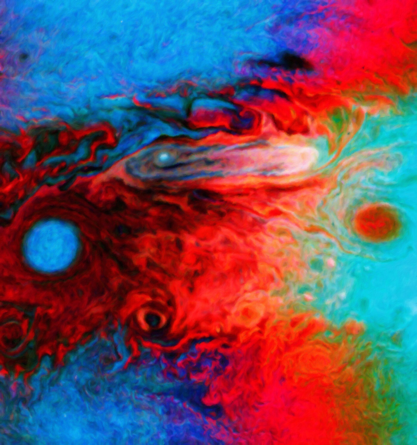 An Art Print smoothed version of the very colour tweaked section of the "Colour me Red" Jupiter