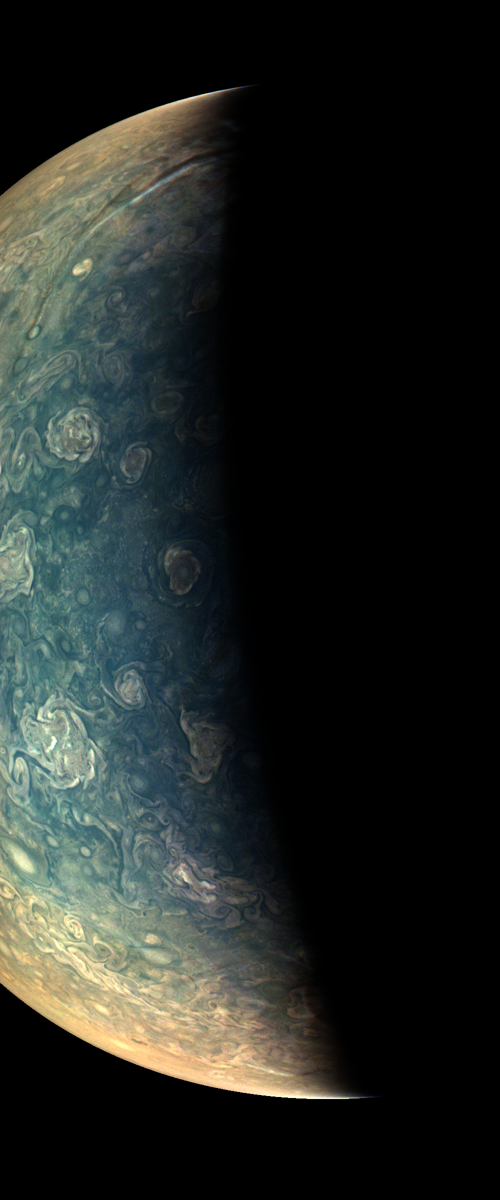 This image is derived directly from the raw image consisting of framelets taken while JunoCam was rotating together with Juno.