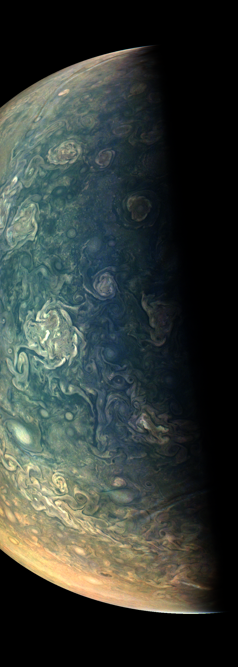 This image is derived directly from the raw image consisting of framelets taken while JunoCam was rotating together with Juno.
