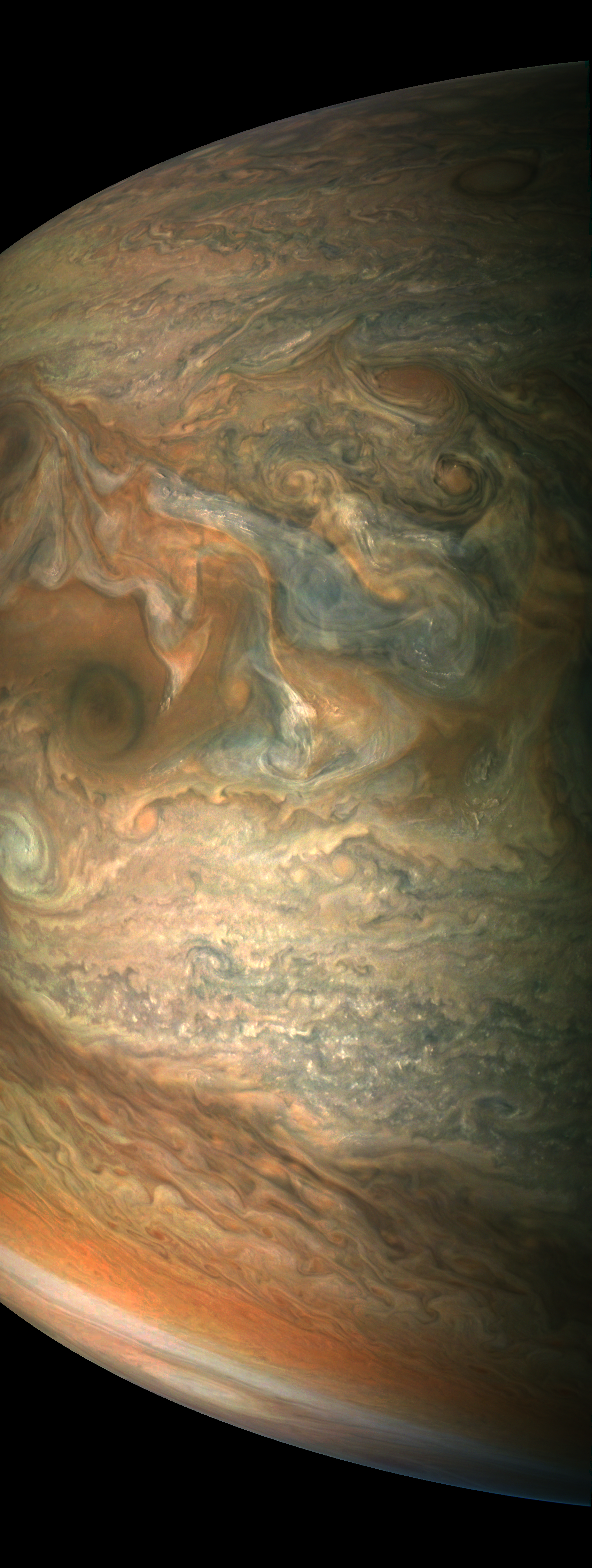 This image is derived directly from the raw image consisting of framelets taken while JunoCam was rotating together with Juno.