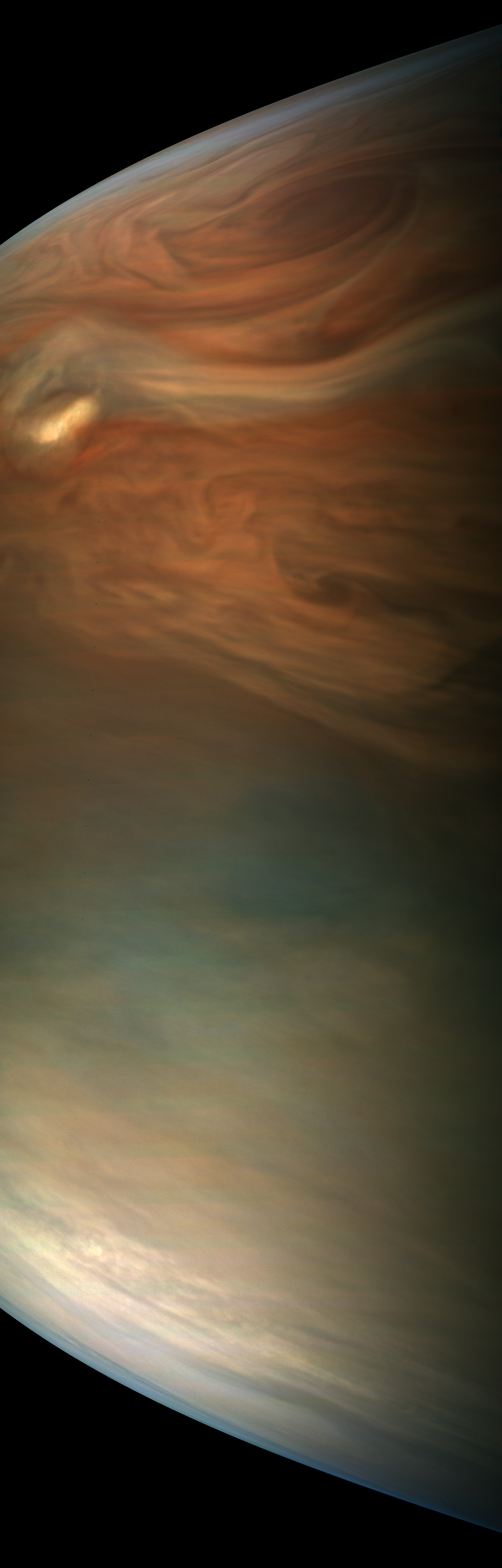 This image is derived directly from the raw image consisting of framelets taken while JunoCam was rotating together with Juno.