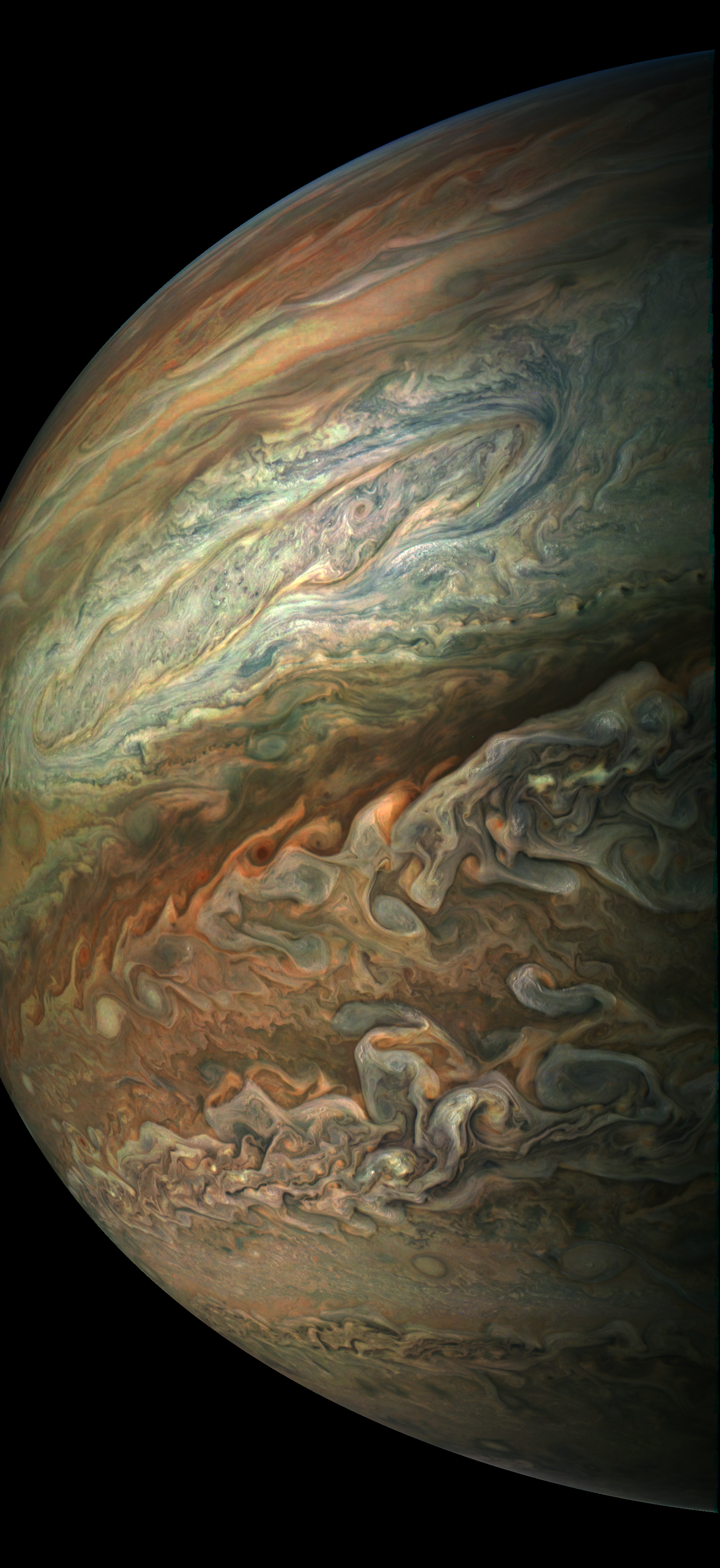 This image is derived directly from the raw image consisting of framelets taken while JunoCam was rotating together with Juno.