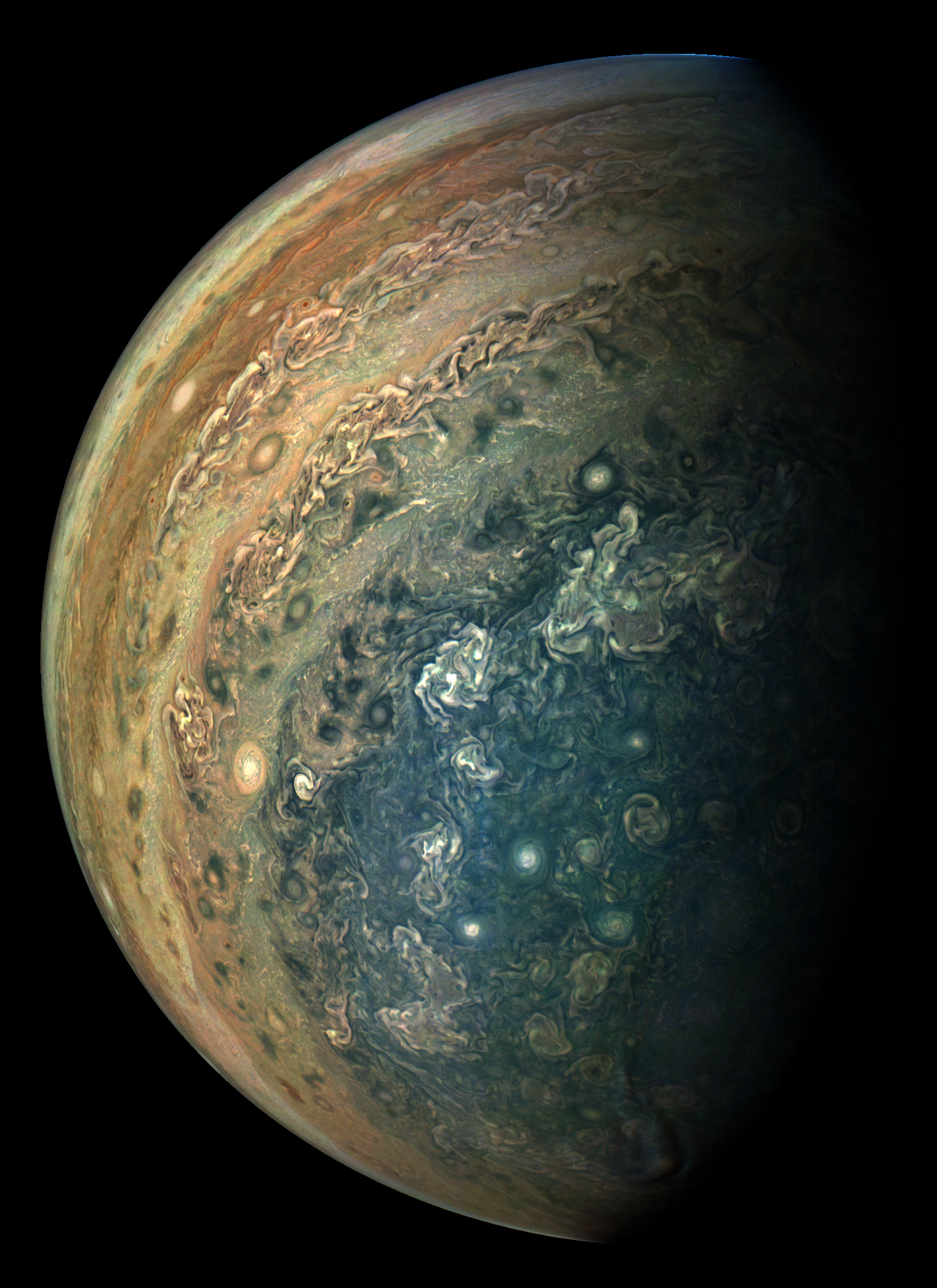 This image is derived directly from the raw image consisting of framelets taken while JunoCam was rotating together with Juno.