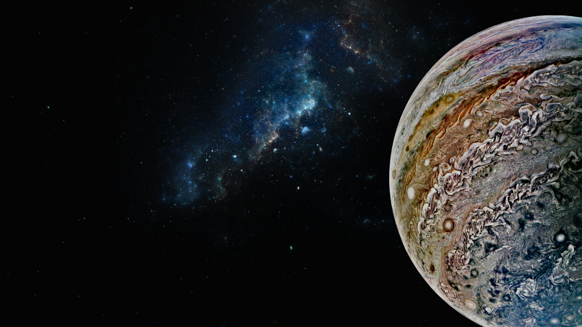 Adjustments to Light, Color Curves, and Shadows. No added Color, Saturation, or Enhancement to Jupiter. Background added for aesthetics. Size and position changed to make a wallpaper background.