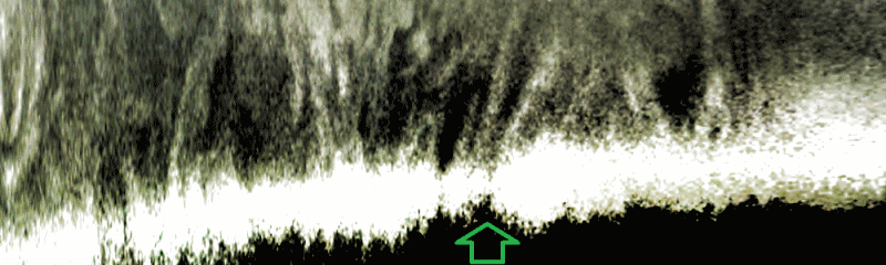 An arrow marks cloud features wich are visible only when near the terminator. This hints towards the clouds being a dilute haze.