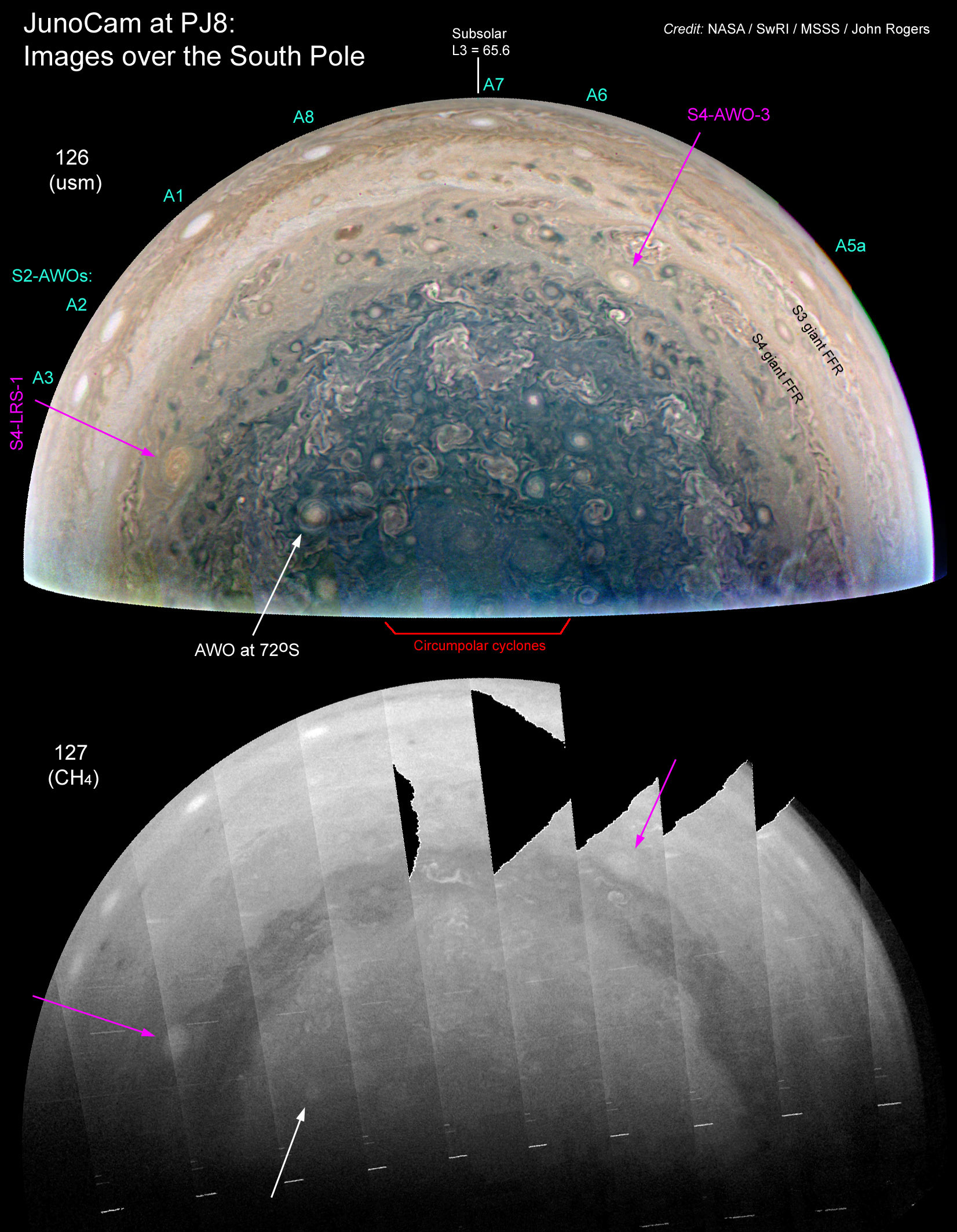 The JunoCam images are identified by a small spacecraft icon. You will see both raw and processed versions of the images as they become available. The JunoCam movie posts have too many images to post individually, so we are making them available for download in batches as zip files.
