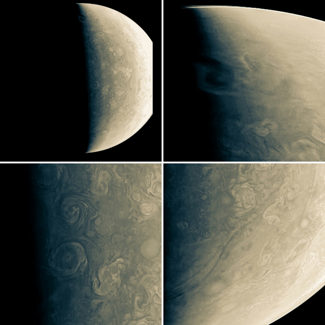 The JunoCam images are identified by a small spacecraft icon. You will see both raw and processed versions of the images as they become available. The JunoCam movie posts have too many images to post individually, so we are making them available for download in batches as zip files.