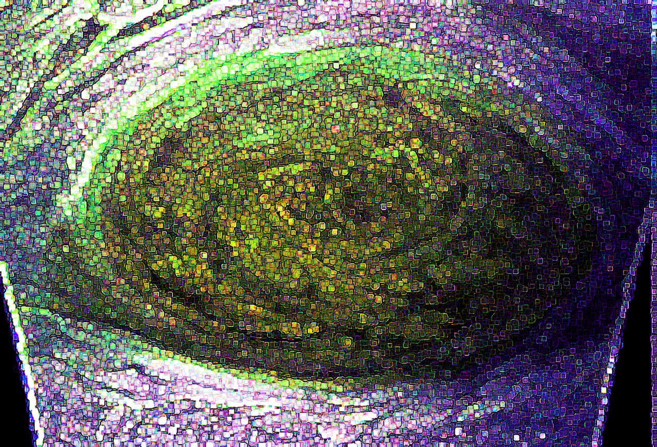 Junocam pixels are 12 bits deep from the camera but are converted to 8 bits inside the instrument using a lossless "companding" table, a process similar to gamma correction, to reduce their size. All Junocam products on the missionjuno website are in this 8-bit form as received on Earth. Scientific users interested in radiometric analysis should use the "RDR" data products archived with the Planetary Data System, which have been converted back to a linear 12-bit scale.