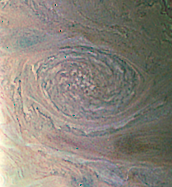 Junocam pixels are 12 bits deep from the camera but are converted to 8 bits inside the instrument using a lossless "companding" table, a process similar to gamma correction, to reduce their size. All Junocam products on the missionjuno website are in this 8-bit form as received on Earth. Scientific users interested in radiometric analysis should use the "RDR" data products archived with the Planetary Data System, which have been converted back to a linear 12-bit scale.