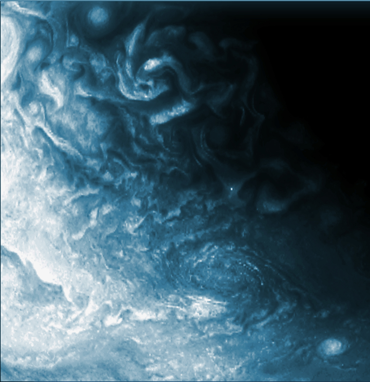 Junocam pixels are 12 bits deep from the camera but are converted to 8 bits inside the instrument using a lossless "companding" table, a process similar to gamma correction, to reduce their size. All Junocam products on the missionjuno website are in this 8-bit form as received on Earth. Scientific users interested in radiometric analysis should use the "RDR" data products archived with the Planetary Data System, which have been converted back to a linear 12-bit scale.