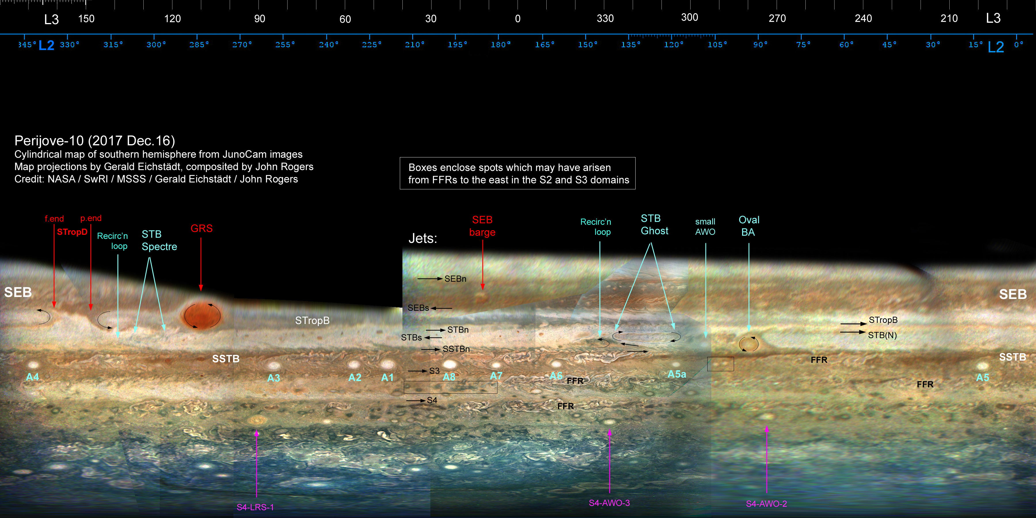 The JunoCam images are identified by a small spacecraft icon. You will see both raw and processed versions of the images as they become available. The JunoCam movie posts have too many images to post individually, so we are making them available for download in batches as zip files.