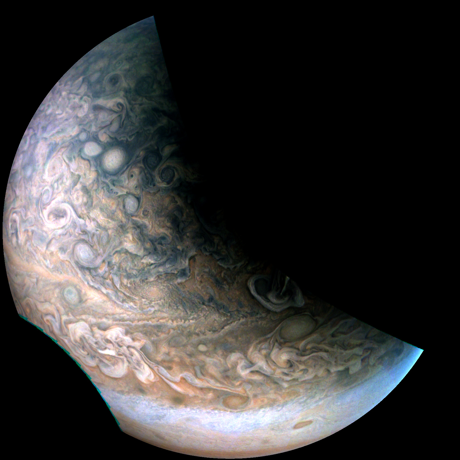 The JunoCam images are identified by a small spacecraft icon. You will see both raw and processed versions of the images as they become available. The JunoCam movie posts have too many images to post individually, so we are making them available for download in batches as zip files.