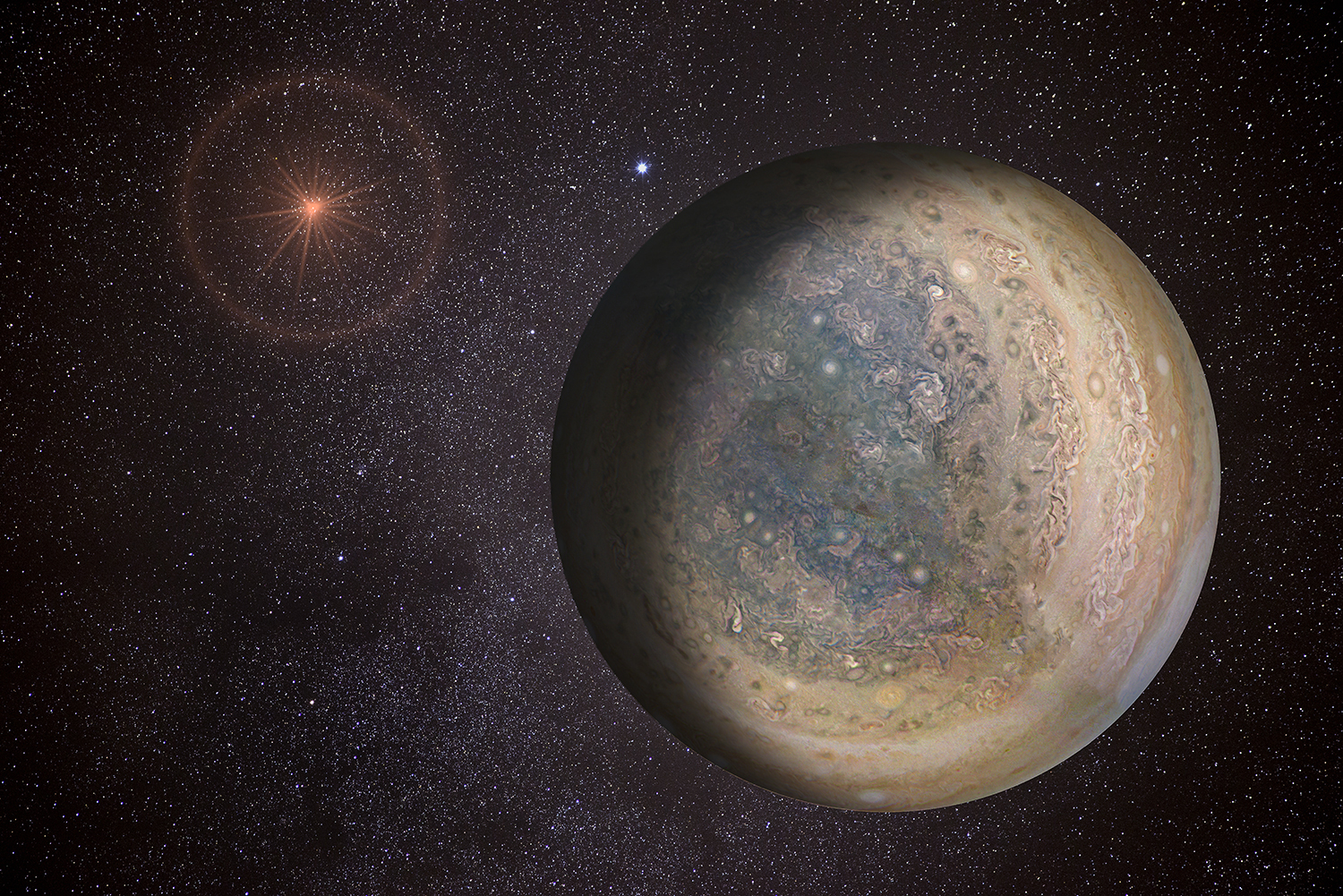 A special note about the Earth Flyby mission phase images: these were acquired in 2013 when Juno flew past Earth. Examples of processed images are shown; most contributions are from amateurs.