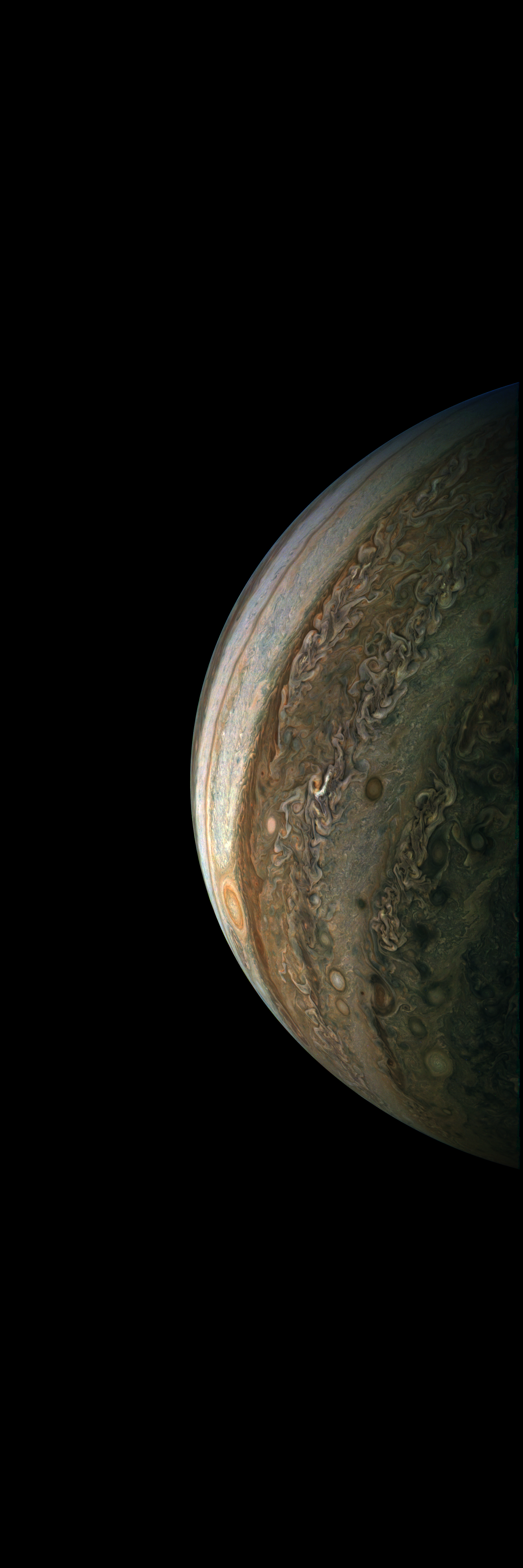 JunoCam took this image during its Perijove-11 pass on 2018-02-07. It is derived directly from the raw image.