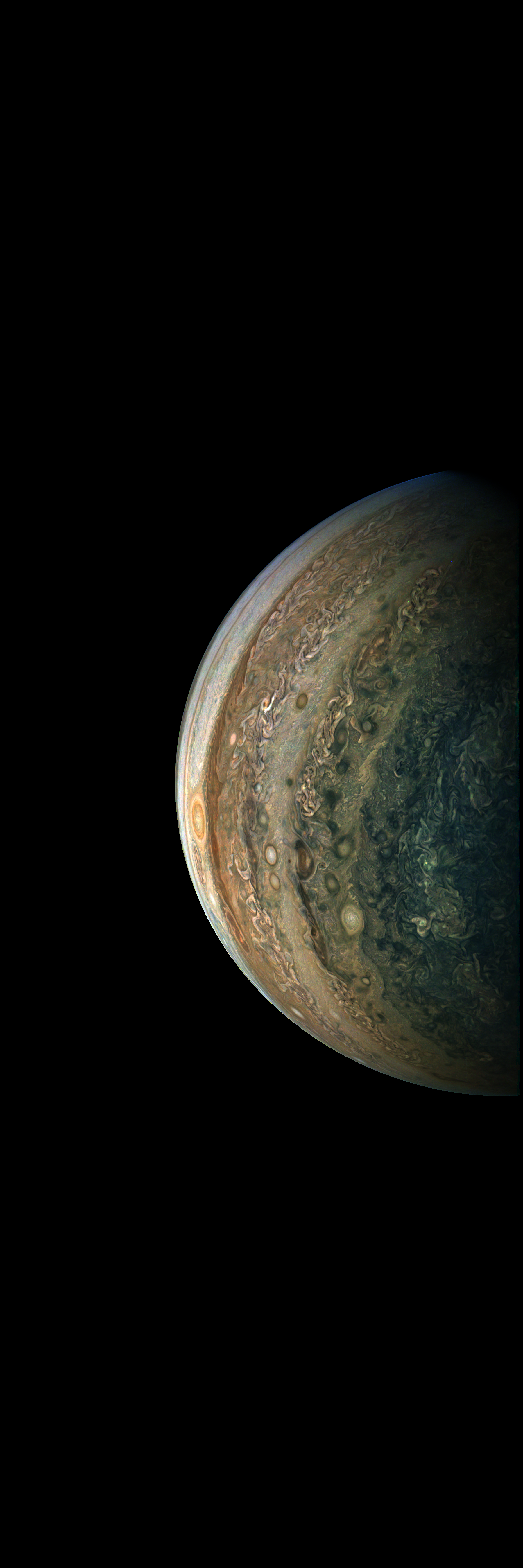 JunoCam took this image during its Perijove-11 pass on 2018-02-07. It is derived directly from the raw image.