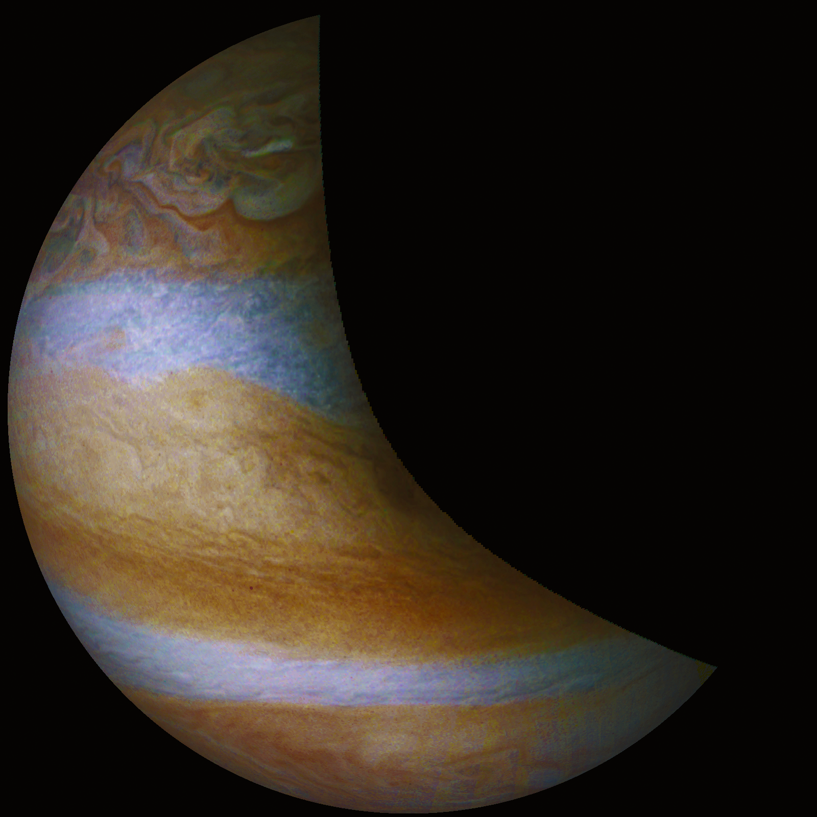 A special note about the Earth Flyby mission phase images: these were acquired in 2013 when Juno flew past Earth. Examples of processed images are shown; most contributions are from amateurs.