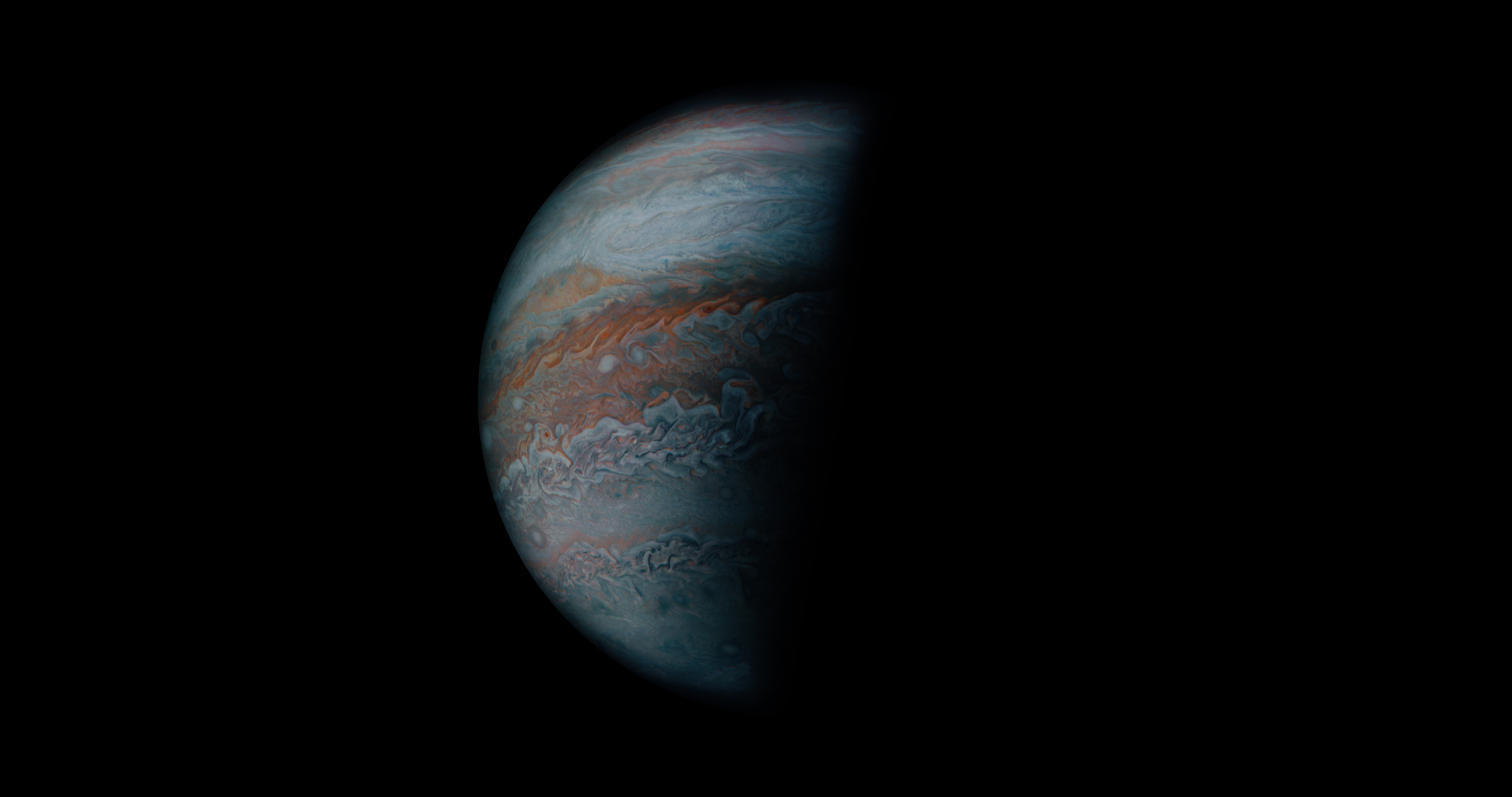 Junocam pixels are 12 bits deep from the camera but are converted to 8 bits inside the instrument using a lossless "companding" table, a process similar to gamma correction, to reduce their size. All Junocam products on the missionjuno website are in this 8-bit form as received on Earth. Scientific users interested in radiometric analysis should use the "RDR" data products archived with the Planetary Data System, which have been converted back to a linear 12-bit scale.