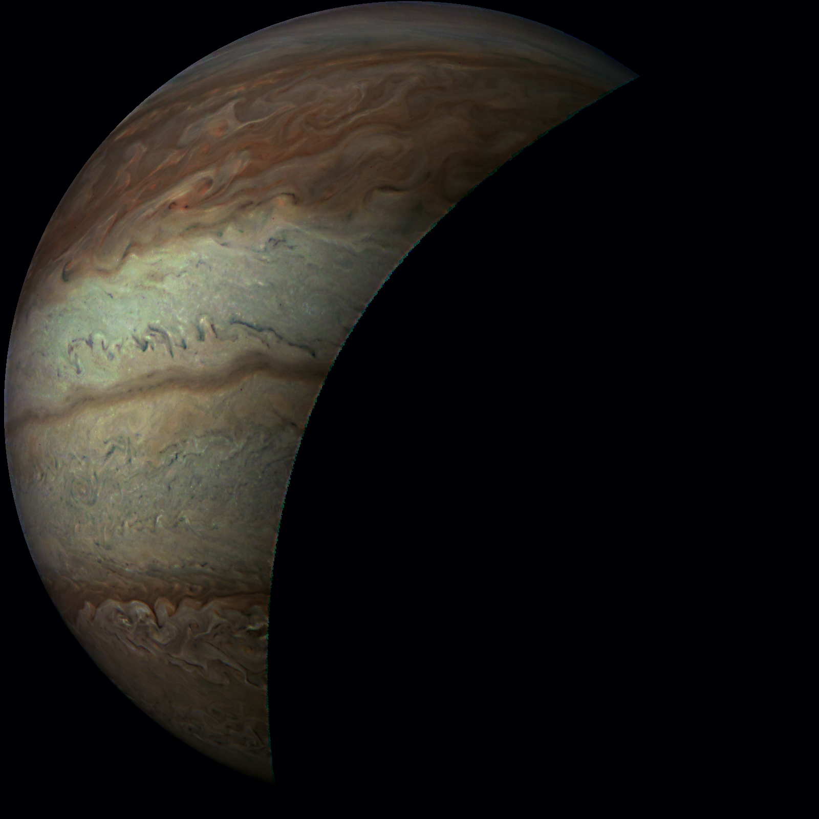 A special note about the Earth Flyby mission phase images: these were acquired in 2013 when Juno flew past Earth. Examples of processed images are shown; most contributions are from amateurs.