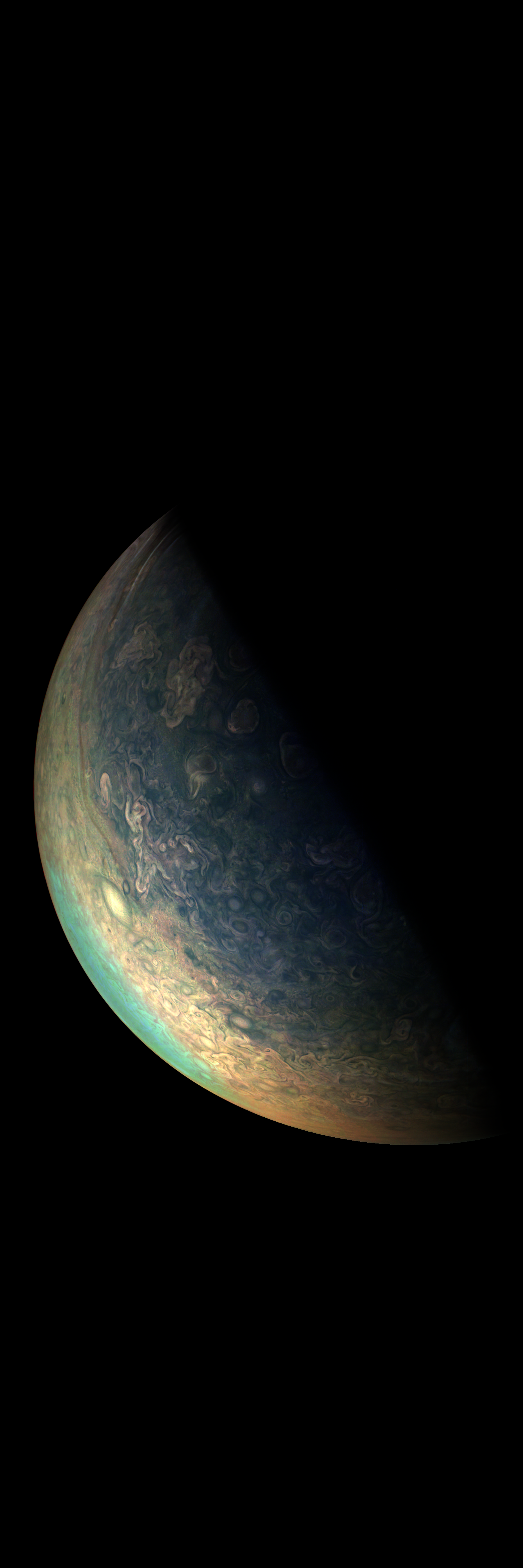 JunoCam took this image during its Perijove-12 pass on 2018-04-01. It is derived directly from the raw image.