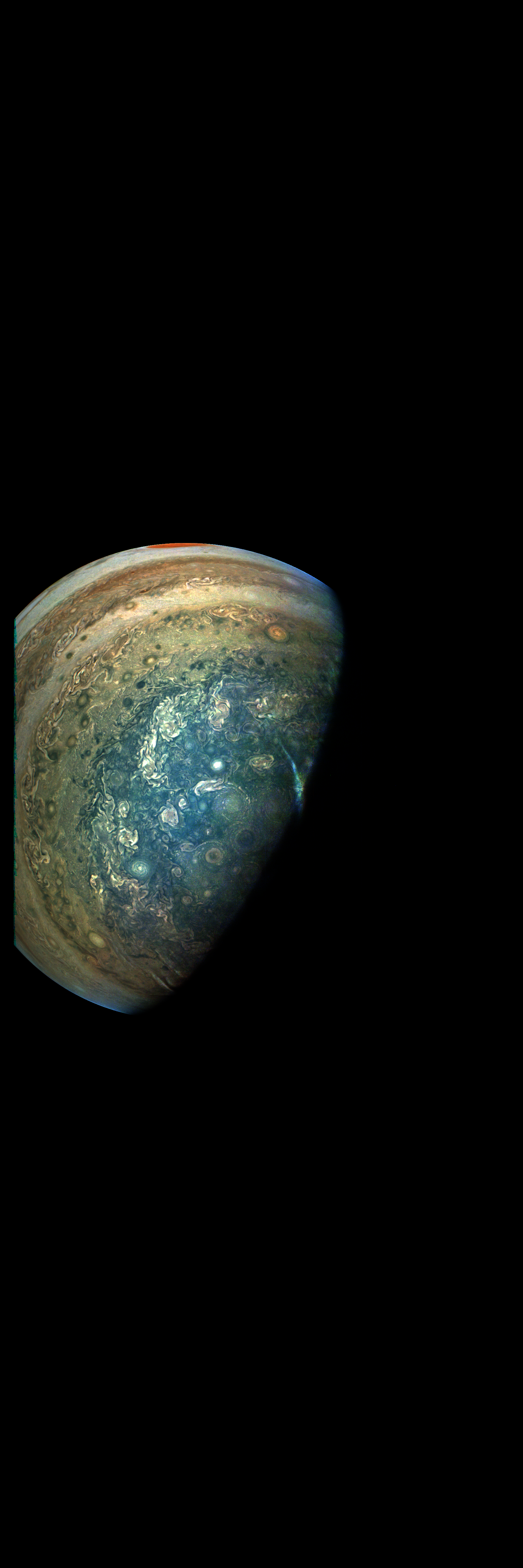 JunoCam took this image during its Perijove-12 pass on 2018-04-01. It is derived directly from the raw image.