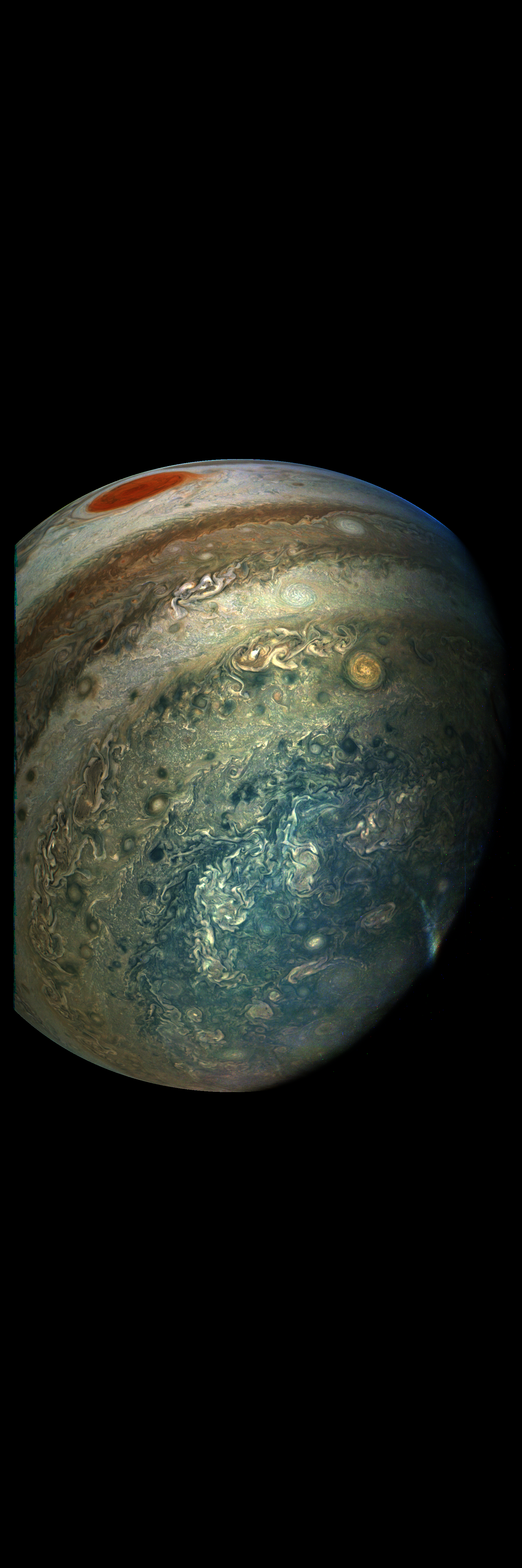 JunoCam took this image during its Perijove-12 pass on 2018-04-01. It is derived directly from the raw image.