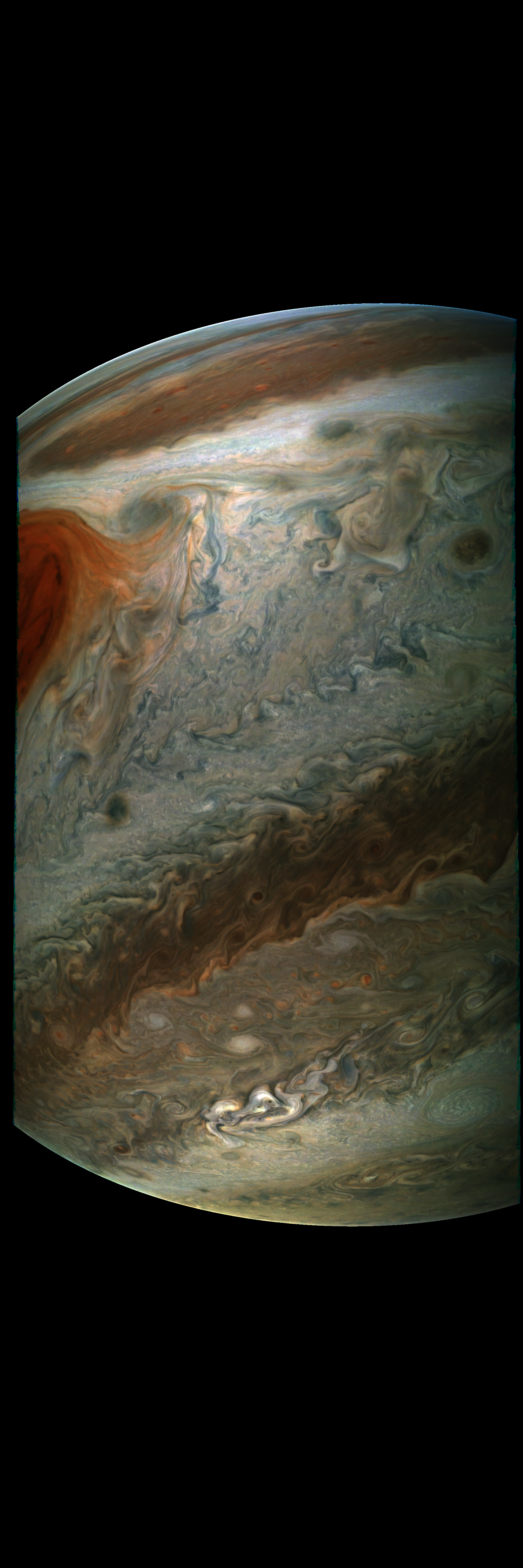 JunoCam took this image during its Perijove-12 pass on 2018-04-01. It is derived directly from the raw image.